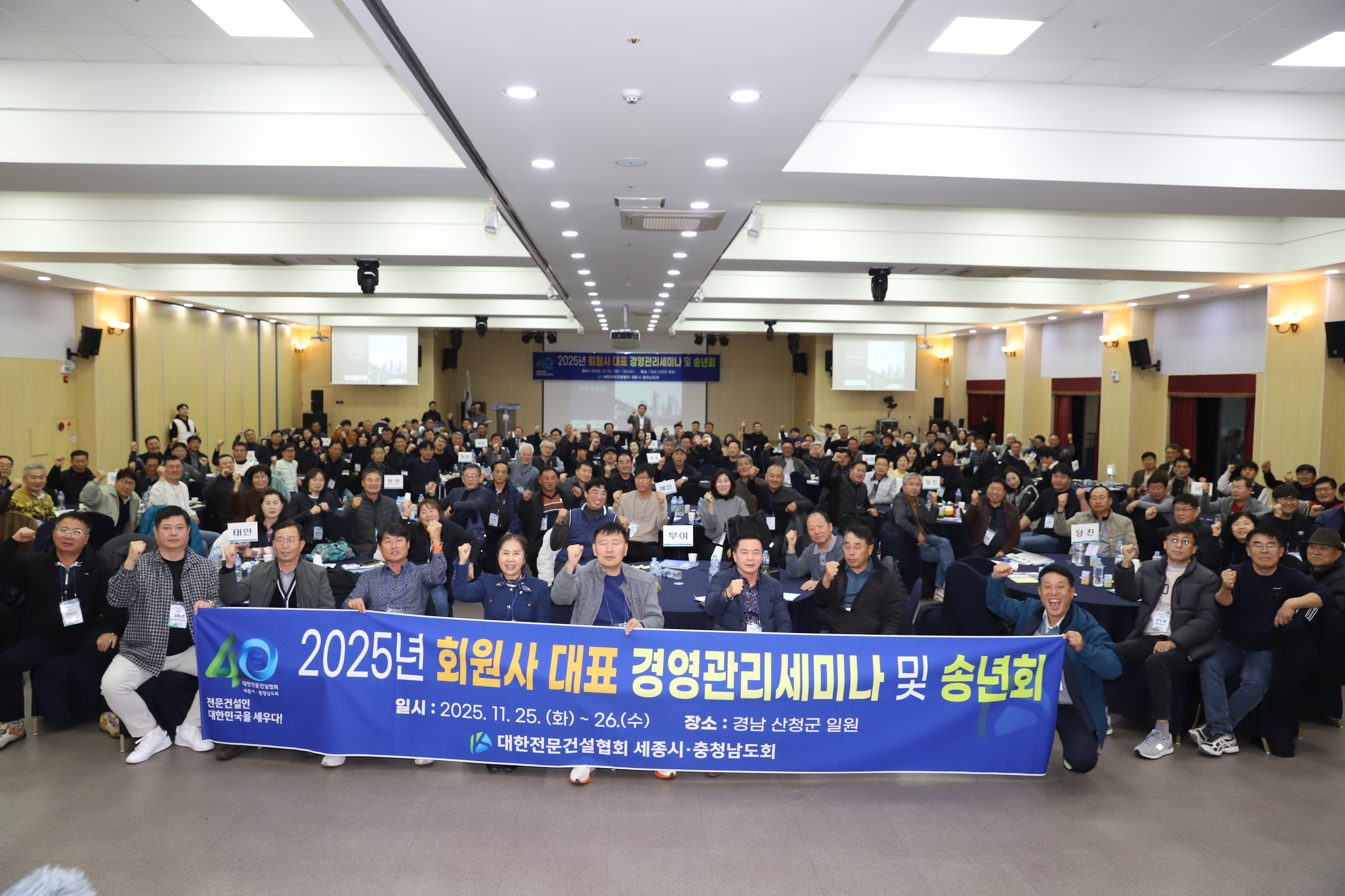 대한전문건설협회 세종시·충남도회(회장 김종언)는 25일부터 26일까지 양일간 경남 산청 한방가족호텔에서 회원사 대표 200여명이 참석한 가운데 ‘2025년도 회원사 대표 경영관리세미나 및 송년회’를 개최했다.